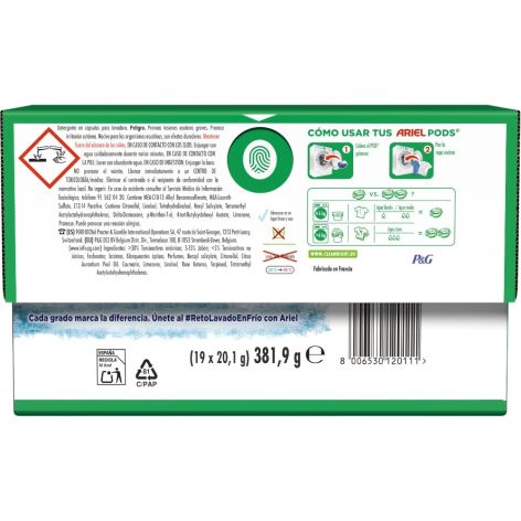 Esta cálida fragancia transforma tu colada en un relajante remanso para disfrutar de momentos inolvidables con tus seres queridos y tus películas favoritas. Para obtener los mejores resultados, coloca el Pod primero en la parte trasera del tambor vacío y pon la ropa encima. Para obtener más información sobre Ariel, lo que hay detrás de nuestros productos y nuestro camino hacia el lavado en frío, visita sostenibilidadariel.es. Mantén el detergente líquido en cápsulas Ariel Pods Todo en 1 fuera del alcance de los niños siempre.