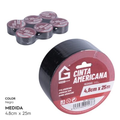 Cinta americana negra 4.8 x 25 m. Extra resistente y flexible para reparaciones y bricolaje. Envío rápido en Droguería Daniel.
