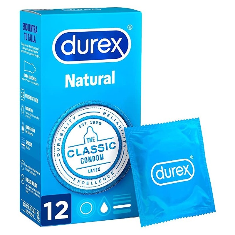 Durex Natural 12 unidades son preservativos de látex natural diseñados para ofrecer protección segura y una sensación suave y cómoda.