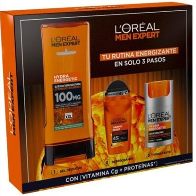 El estuche L’Oréal Men Expert Hydra Energetic es el regalo ideal para el hombre activo. **En primer lugar**, este set de 3 piezas ofrece una solución total contra el cansancio. **Por lo tanto**, es perfecto para recuperar la vitalidad en el rostro y el cuerpo. El pack suele incluir la crema hidratante, el gel de ducha y un desodorante. **Además**, es una opción magnífica para quienes buscan una rutina rápida y efectiva. Disfruta de una piel con energía **gracias a** su fórmula con Vitamina C. **En resumen**, es el kit básico para el cuidado masculino diario.