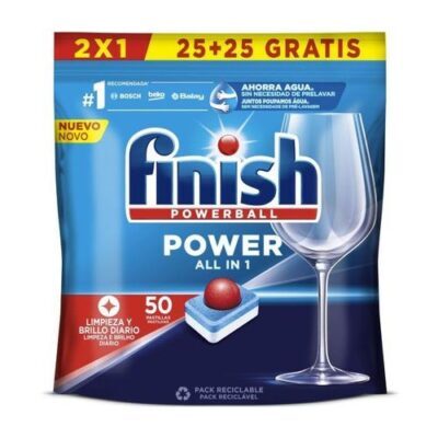 El finish lavavajillas powerball power all in 1 25+25 unidades es el aliado perfecto para mantener tus platos impecables día tras día. En primer lugar, destaca por su exclusiva tecnología Powerball, que desprende agentes de limpieza profunda para eliminar incluso los restos de comida reseca. Por lo tanto, no es necesario realizar un prelavado manual de tus platos, lo que te permite ahorrar tiempo y agua en cada ciclo. Este pack ahorro en formato duplo te proporciona un total de 50 pastillas, asegurando una limpieza de alta calidad durante mucho más tiempo. Además, su fórmula «Todo en 1» incluye funciones de sal y abrillantador para proteger tu lavavajillas y potenciar el acabado final. En resumen, es eficacia y comodidad para tu hogar.