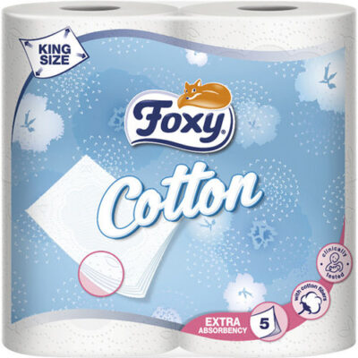 El Foxy cotton papel higiénico 5 capas ¡4rollos! es la cumbre de la suavidad y la resistencia para tu higiene diaria. En concreto, sus 5 capas reforzadas con fibras de algodón ofrecen una absorción inigualable y un tacto acolchado que mima tu piel. Por este motivo, es el papel más recomendado para quienes buscan el máximo confort y calidad en un formato de lujo. Consigue una suavidad superior y además un rendimiento excepcional con Foxy.