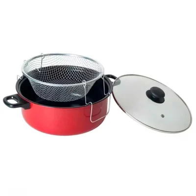 La freidora alice 26 cm antiadherente es la herramienta perfecta para lograr esos fritos dorados y crujientes que tanto gustan en casa. En primer lugar, destaca por su amplio diámetro de 26 cm, que ofrece la capacidad ideal para cocinar raciones familiares de una sola vez. Por lo tanto, es la opción perfecta para freír patatas, croquetas o empanados de manera cómoda y eficiente. Su recubrimiento antiadherente de alta calidad garantiza que los alimentos no se peguen al fondo, facilitando una cocción uniforme. Además, su diseño robusto asegura una distribución del calor óptima en toda la base. Disfruta de una cocina práctica. En resumen, es durabilidad y funcionalidad en tu fogón.