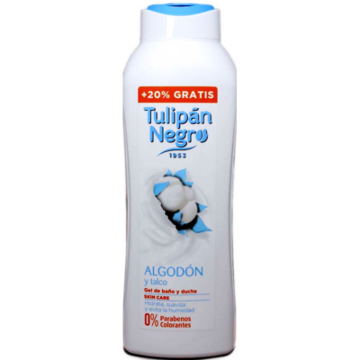 El gel de baño y ducha tulipan negro ¡algodon y talco! es la esencia del bienestar y la ternura en el cuidado diario. En primer lugar, destaca por su combinación magistral de extracto de algodón y notas de talco, que ofrecen una fragancia empolvada, limpia y profundamente reconfortante. Por lo tanto, es la opción ideal para quienes buscan una higiene delicada que evoque el aroma de la ropa limpia y el cuidado más tierno para toda la familia. Su fórmula cremosa limpia suavemente sin agredir la barrera cutánea, proporcionando una sensación de hidratación inmediata. Además, su textura rica genera una espuma envolvente que mima la dermis. Disfruta de un baño relajante. En resumen, es suavidad clásica en cada gota.