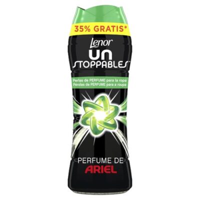 Este pack incluye un bote de 210 g y otro de 75 g, lo que permite disfrutar de la fragancia duradera de Lenor Unstoppable tanto en el hogar como en viajes o coladas específicas que requieren un aroma más intenso. Es totalmente compatible con cualquier detergente, incluida la gama Ariel.