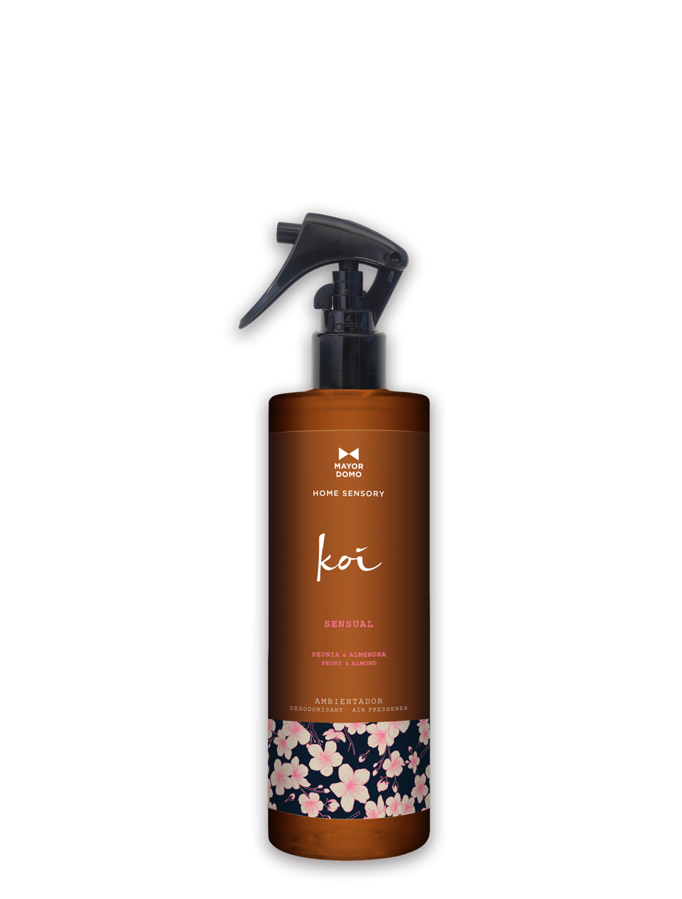 MAYORDOMO KOI Ambientador Peonia & Almendra 240 ml es un ambientador en spray que combina la pasión y dulzura de la peonía y la almendra.