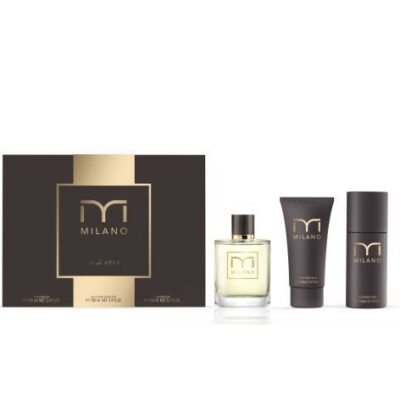 El set incluye tres productos complementarios que permiten disfrutar del aroma Milano Clásico en diferentes momentos de la rutina diaria: