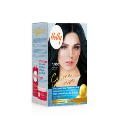El tinte Nelly negro azul Nº 1 ofrece un color profundo, elegante y con un matiz azulado que aporta un acabado moderno y luminoso. Su fórmula profesional garantiza una cobertura total, incluso en cabellos con canas, dejando un resultado uniforme y duradero. El tono negro azul es ideal para quienes buscan un color intenso con un reflejo frío que realce el brillo natural del cabello.